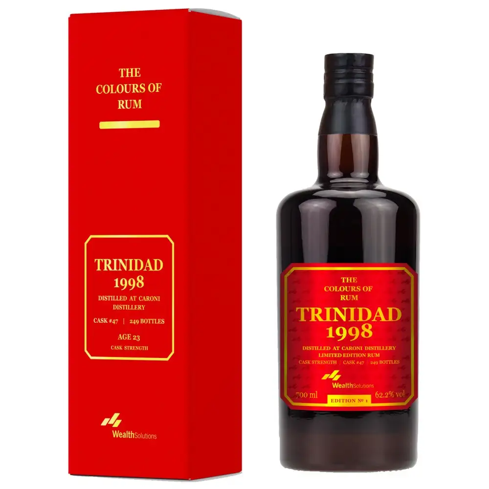 Highly praised Caroni: intense yet smooth, fruity with classic rubber-tar notes, herbal tea and tobacco nuance. Considered a standout, approachable 1998 vintage with satisfying depth and warmth.